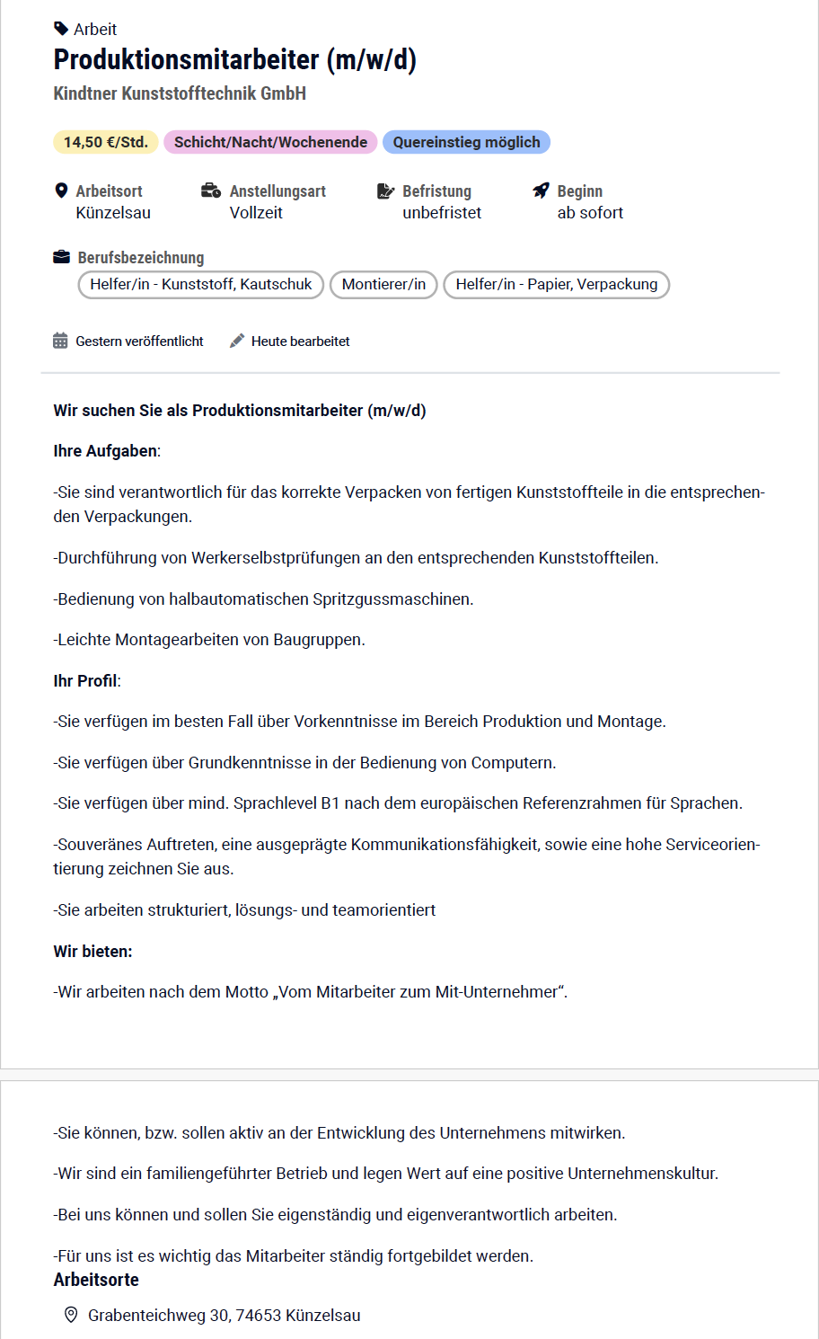 - Produktionsmitarbeiter (m/w/d) – Detailübersicht hier klicken –